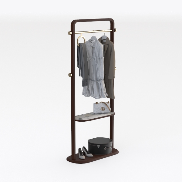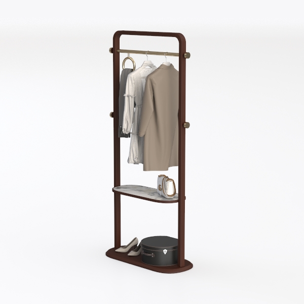 Inspired by minimalist elegance, this piece blends warm wooden textures with sleek metallic accents, creating softness and sophistication. The wooden frame has smooth, polished surfaces, while the marble shelf adds cool refinement, and the metal rod glimmers gently, enhancing modern allure. Ideal for contemporary bedrooms or walk-in closets, pairing with neutral decor. Spacious to hang clothes, store bags, and display shoes—practical and aesthetic, elevating spaces with understated luxury.