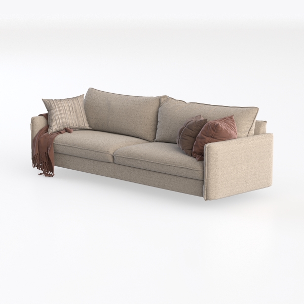 This sofa merges aesthetic elegance with everyday comfort, rooted in the desire to craft a space that feels both intentional and nurturing. Its soft, textured linen-cotton blend fabric wraps the body in gentle warmth—cool enough to stay refreshing in summer, yet invitingly tactile when touched, like a well-loved blanket. The warm beige base, accented with rich brown throw pillows and a fringed knit blanket, balances understated simplicity with subtle depth, avoiding monotony while keeping the focus on calm, timeless style.