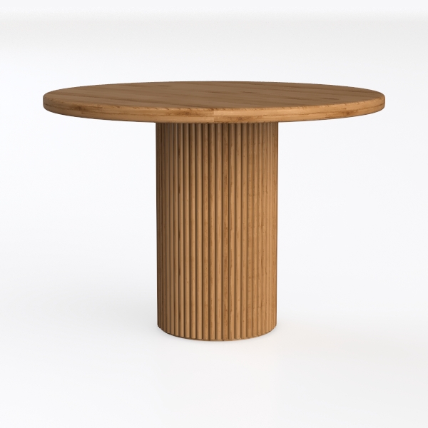 Designed with inspiration from natural organic forms, this wooden table blends a smooth, rounded top with a textured column base. The warm oak finish highlights rich wood grain, while the matte surface offers a tactile, comfortable feel. Ideal for modern minimal or Scandinavian-style living rooms, pair it with linen sofas and potted plants to enhance cozy, serene vibes. A stable, compact design ensures space efficiency, perfect for small dining nooks or side tables.