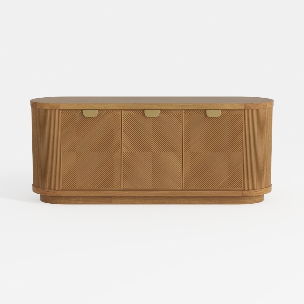 Meridian Furniture 77054Natural Everson Collection Mid-Century Modern Sideboard/Buffet with Rich Natural Finish, Solid Wood, Oak Veneer, 80" W x 20" D x 34" H, Natural