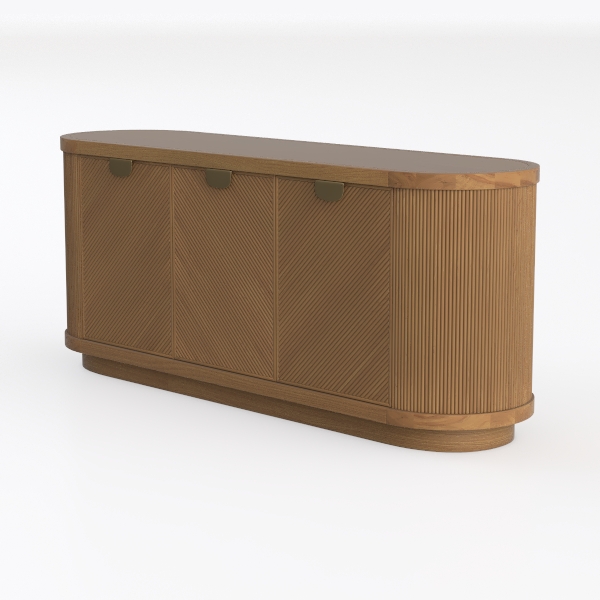 Fluted Storage Cabinet, 31.5“ Wooden Sideboards Buffet Boho Accent with Adjustable Shelves, Credenza, Console, Entryway Cabinet for Living Room (3, Oak)