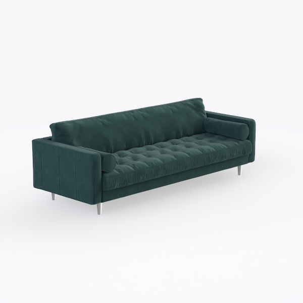 Elegantly balancing mid-century modern warmth with contemporary simplicity, this sofa stands as a versatile centerpiece for living spaces. Its design draws inspiration from timeless textile traditions—think the lush, tactile allure of 1950s velvet upholstery reimagined for today, with a nod to nature’s deep, earthy tones in its rich emerald green hue.