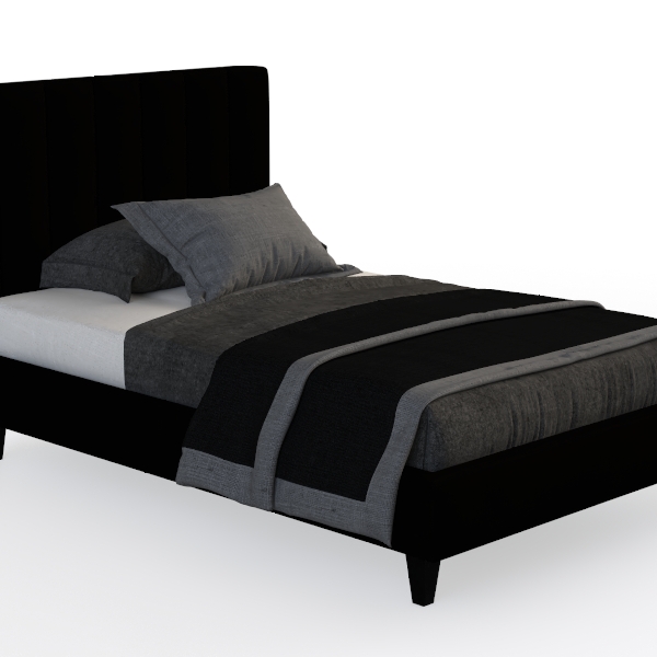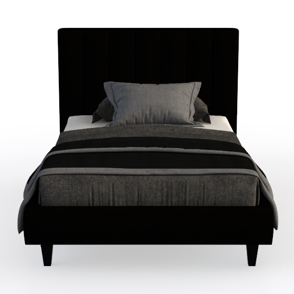 Passion Furniture Black Velvet Channel Tufted Twin Panel Bed PF-G0407-TB-UP