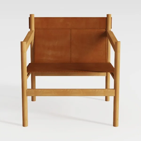 This armchair draws inspiration from the purity of Scandinavian design, harmonizing natural materials with minimalist structure. The light oak frame, with its smooth, clean lines, offers a soft, organic foundation, while the warm, buttery leather upholstery adds rich tactile depth. Stitched seams along the back and seat create subtle texture, gently softening the frame’s硬朗 and infusing the piece with timeless charm.