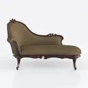 Inspired by classic Victorian aesthetics, this elegant chaise lounge exudes timeless charm. The rich upholstery, combined with intricate woodwork, creates a luxurious feel that invites relaxation. The soft, textured fabric, in a soothing green hue, complements the deep mahogany frame, enhancing the overall visual appeal.