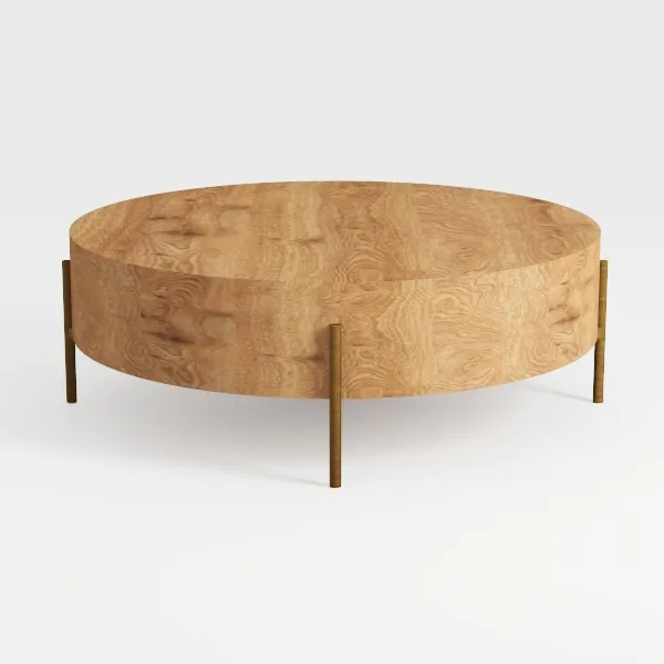 Inspired by organic wood textures and geometric balance, this circular table blends natural warmth with sleek modernity. Its smooth, light wood surface showcases rich grain patterns, while thin metallic legs add a subtle, elegant contrast. Perfect for a contemporary living room, it pairs beautifully with minimalist sofas and soft-toned decor. The spacious top provides plenty of room for daily essentials, and the stable base ensures lasting durability.
