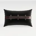A 3D model of a pillow, featuring black fabric and a brown leather strap with metal buckles, and a modern minimalist aesthetic. It has a low-poly design and is suitable for home decor.