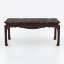 This elegant piece of furniture merges traditional artisanal charm with contemporary simplicity, taking cues from the harmonious blend of classic design lines and modern minimalism. The tabletop, boasting a rich, marbled surface with deep brown and subtle gold veining, exudes a sense of natural luxury—its smooth, cool texture catching light to reveal intricate, organic patterns. The warm-toned wooden legs, crafted from polished hardwood, feature gently curved profiles with delicate carved motifs along the lower edge, adding depth and a touch of timeless grace without overwhelming the design’s clean silhouette.