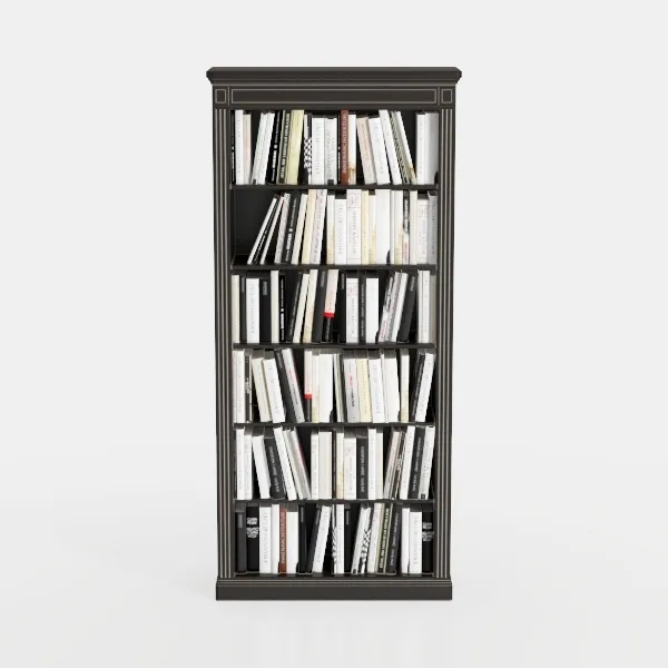 This elegant bookshelf, inspired by classic library designs, features rich, dark wood with intricate carved trim, exuding warmth and timeless charm. Crafted with smooth surfaces and a matte finish, it feels solid yet inviting, catching light softly for a refined look. Ideal for a study or living room, it blends traditional elegance with modern minimalism, complementing marble tops or leather armchairs. Spacious, evenly spaced shelves hold books of all sizes, keeping your collection organized and easily accessible.