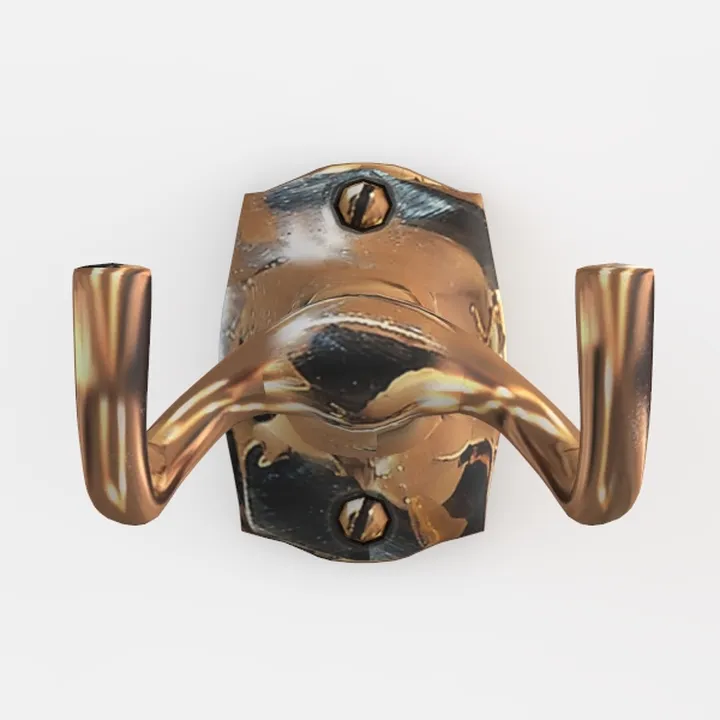 A 3D model of an antique brass wall hook, a decorative ornament with vintage aesthetic. It features detailed textures and screw fastenings, suitable for home decor, hanging clothes or small items.
