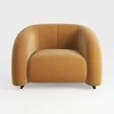 Inspired by the soft, undulating forms of natural landscapes, this armchair embodies a harmonious blend of organic design and modern minimalism. Its warm terracotta upholstery, with a plush, velvety texture, feels both tactile and substantial—light-catching in soft light, it wraps the eye in a comforting, earthy glow. The gently curved arms and rounded backrest flow seamlessly, creating a silhouette that balances intimacy with openness, making it feel both cozy and expansive.