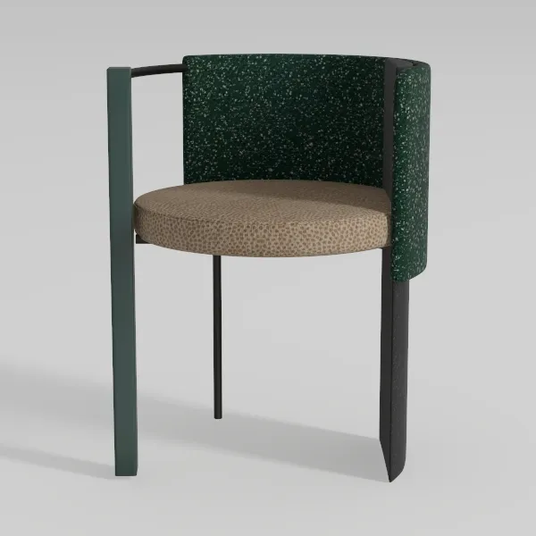 Inspired by organic curves and geometric precision, this chair features textured emerald-green upholstery and a soft, neutral-toned seat. Sleek matte black legs and a balanced silhouette blend warmth and contemporary edge, ideal for a minimalist living room or cozy reading nook paired with light oak and warm-toned art. Plush seat and contoured back offer exceptional comfort, with wide armrests adding extra support.