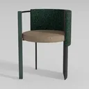 Inspired by soft organic curves and minimalist Scandinavian design, this chair features a soft, textured sage green upholstery feeling warm and inviting. Sleek black metal legs add a modern edge, balancing a lightweight look with sturdy support. Its compact silhouette suits small dining rooms or living corners, pairing beautifully with natural wood tables or neutral-toned walls. The plush seat offers ergonomic comfort, ideal for long meals or relaxed reading.