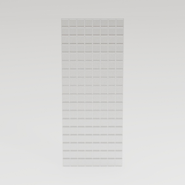 Drawing inspiration from architectural minimalism and geometric precision, this piece embodies a harmonious blend of order and lightness. Crafted with a smooth, matte finish, its evenly spaced grid pattern creates a subtle play of shadows and light, enhancing visual depth without overwhelming the space. The surface feels cool and slightly textured, balancing sleek modernity with a gentle tactile presence. Its vertical orientation and repetitive yet dynamic structure evoke a sense of calm, making it a versatile element for contemporary interiors.