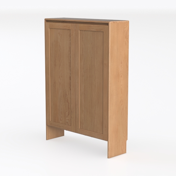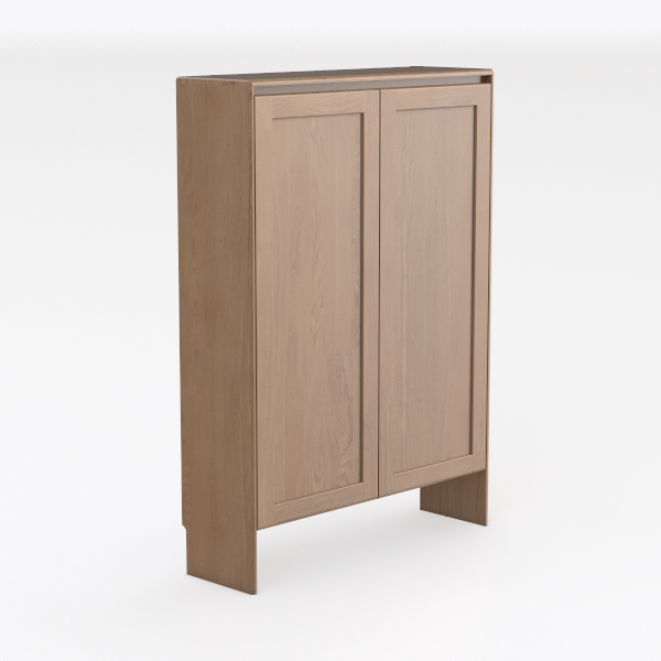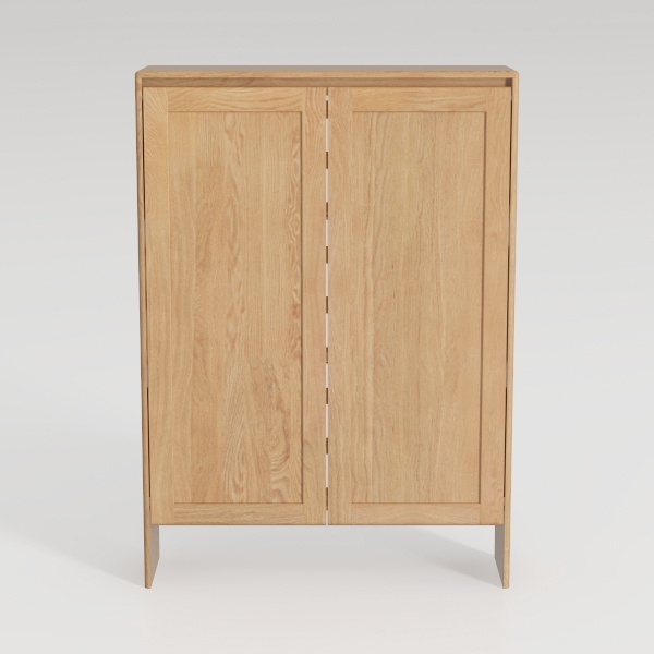 Ideal for a minimalist living room, dining area, or entryway, it pairs beautifully with neutral color palettes, complementing textured linen sofas, woven rugs, and soft, diffused lighting. Adding a touch of contemporary elegance, the sleek, hidden hinges and slender, angled legs (in a matching oak hue) elevate its design without overwhelming it.