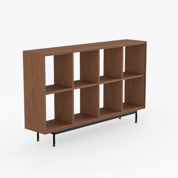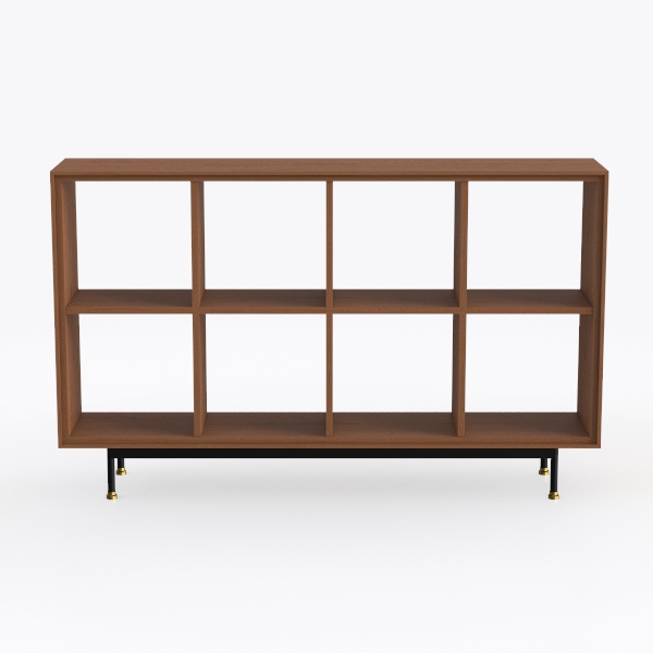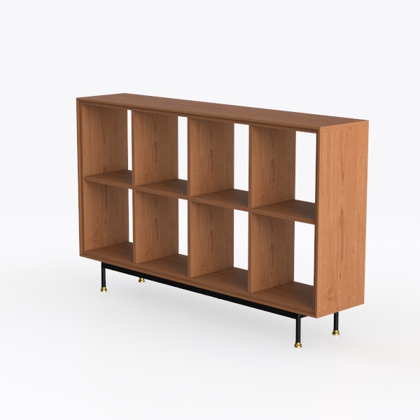 Ideal for a modern, minimalist, or Scandinavian-inspired living room, it pairs beautifully with leather sofas, marble coffee tables, and potted greenery, becoming a focal point that ties the space together. In a home office, it works equally well, organizing books, decorative objects, and small plants into 9 thoughtfully spaced compartments, keeping the area clutter-free while showcasing personal items. Functionality is key here: the sturdy wooden shelves support heavy loads, while the lower clearance between the frame and floor allows easy access for cleaning tools or small pets. The combination of natural wood and metallic accents creates a harmonious blend of comfort and sophistication, making it a must-have for anyone seeking both style and utility in their home.