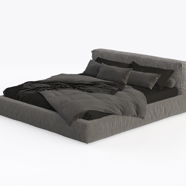 This bedroom piece draws inspiration from the harmonious blend of Scandinavian minimalism and the tactile warmth of natural textures, aiming to create a space that feels both refined and deeply comforting. The headboard and frame feature a soft, lived-in gray fabric, its subtle crinkled surface catching light gently to evoke a sense of organic softness—like a carefully draped textile, yet structured enough to maintain a sleek silhouette. The deep, plush material invites tactile interaction, promising a cozy, hug-like support whether leaning against it for a morning read or sinking into the bed after a long day.