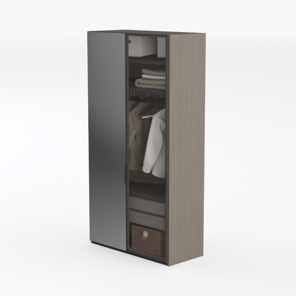 This wardrobe embodies the essence of minimalist design, born from a desire to merge practicality with understated sophistication. Crafted from matte-finished wood with subtle, natural grain patterns, its deep, warm tone creates a grounded presence, while clean, vertical lines along the frame add a sense of height, making the piece feel both substantial and airy in any space. The smooth, cool-to-the-touch surfaces invite gentle interaction, and the sleek sliding doors—with their seamless, hinge-free design—save floor space, ensuring easy access without disrupting the room’s flow.