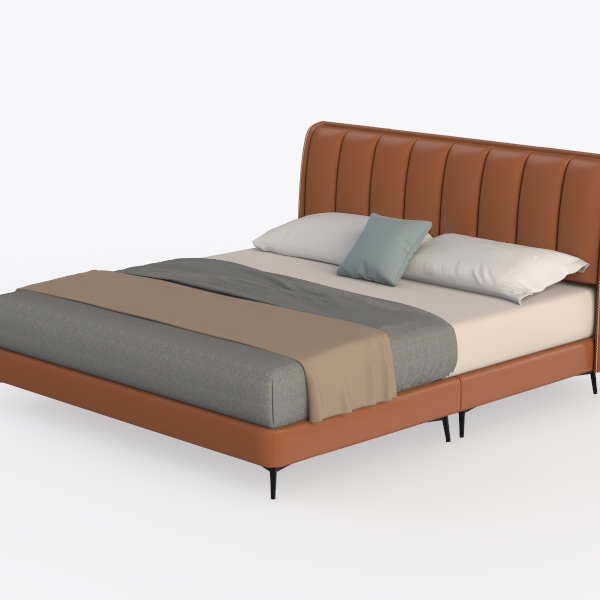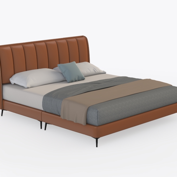 Rooted in the harmony of warm, earthy aesthetics and clean, contemporary lines, this piece draws inspiration from the quiet luxury of natural materials and intentional simplicity. The headboard, crafted with a smooth, slightly textured surface, features elegant vertical channeling that adds subtle dimension while maintaining a streamlined silhouette—its rich brown tone evokes the warmth of polished leather, inviting gentle contact and infusing the space with a sense of grounded comfort.
