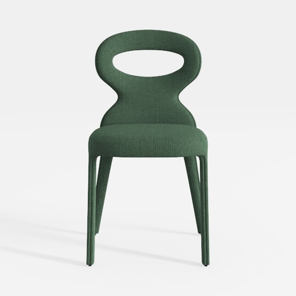 This elegant chair takes cues from the fluid curves of organic art, blending contemporary simplicity with subtle sculptural flair. Its rich, deep emerald hue—evoking the quiet beauty of aged foliage—casts a warm, grounding glow, while the textured, soft upholstery feels surprisingly plush to the touch, inviting both casual and intentional seating. The design’s most striking feature is its distinctive backrest: a graceful, circular cutout that lightens the silhouette, creating a sense of airiness against the solid, structured base.