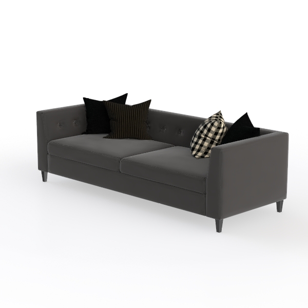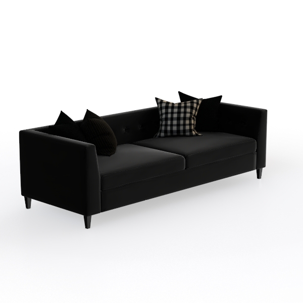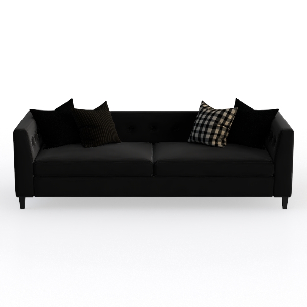 Introducing a stunning centerpiece for your living space, this sleek sofa embodies modern sophistication with its minimalist design and luxurious textures. Inspired by contemporary architectural trends, the sofa features a striking black exterior, exuding elegance and charm. Its smooth surface invites touch, while the addition of plush throw pillows brings a cozy contrast, enhancing both comfort and visual appeal.