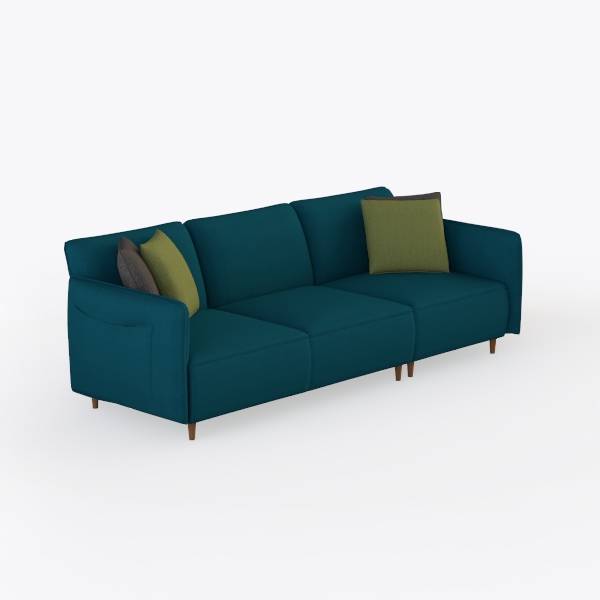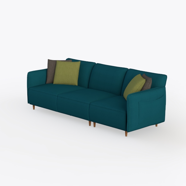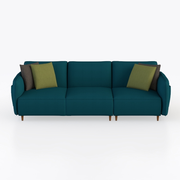 This stunning sofa is inspired by contemporary design principles, blending comfort with stylistic flair. The rich teal upholstery provides a bold statement, effortlessly brightening any space while exuding a sense of tranquility. The soft fabric invites you to sink in, offering a luxurious tactile experience that feels both inviting and stylish.