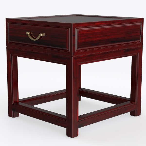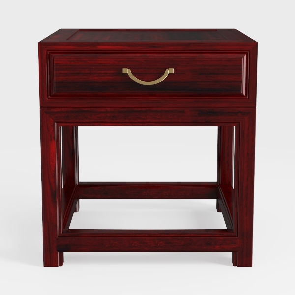 This elegant nightstand draws inspiration from traditional oriental furniture, merging classic craftsmanship with modern minimalist sensibilities. Its warm, rich crimson hue exudes timeless sophistication, while the intricate wood grain patterns—revealed through a smooth, polished surface—add depth and organic character. A subtly curved brushed brass handle adorns the single drawer, balancing the piece’s traditional charm with a touch of understated luxury.