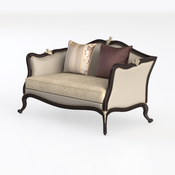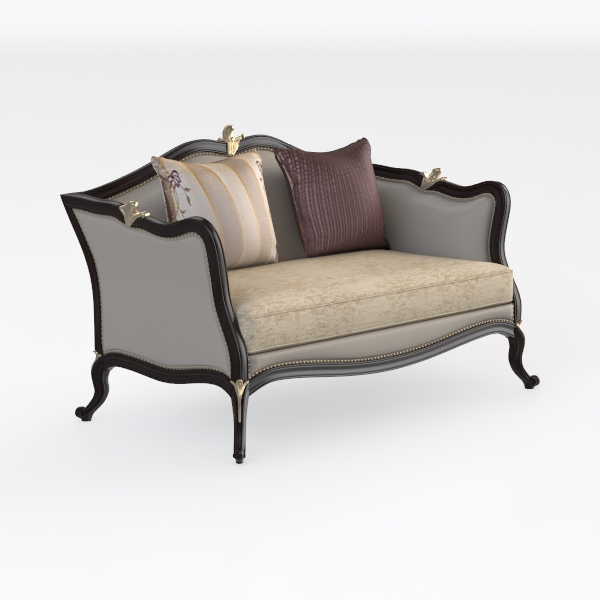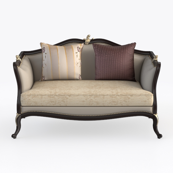 This exquisite piece draws design inspiration from classic elegance, characterized by its ornate detailing and graceful curves. The frame, crafted from rich dark wood, exudes a sense of luxury, while the soft upholstery in muted tones invites comfort and tranquility. The interplay of textures, especially with the mix of velvet and linen, creates a visually appealing depth that can elevate any interior.