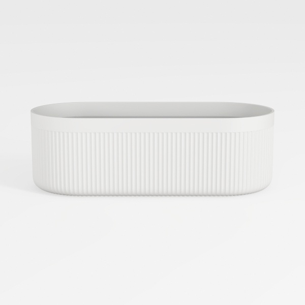 71" Stone Resin Freestanding Bathtub, Oval Solid Surface Bathroom Freestanding Tub, Thin Edge Stand Alone Tub with Integrated Slotted Overflow and Pop-up Drain, Matte White 302-180