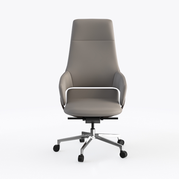 This elegant chair embodies a harmonious blend of modern design philosophy and practical comfort, drawing inspiration from the fusion of minimalist aesthetics and ergonomic science. Its high, contoured backrest follows the natural curve of the spine, while the soft, full-grain leather upholstery offers a buttery-smooth touch—cool to the touch yet yielding to the body, creating an inviting seating experience that feels both supportive and indulgent. The matte metal base, with its geometric angularity, contrasts gently against the warm leather, adding a subtle industrial edge to the overall refined look, where clean lines and balanced proportions take center stage.