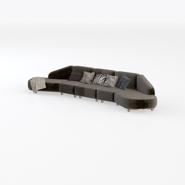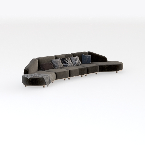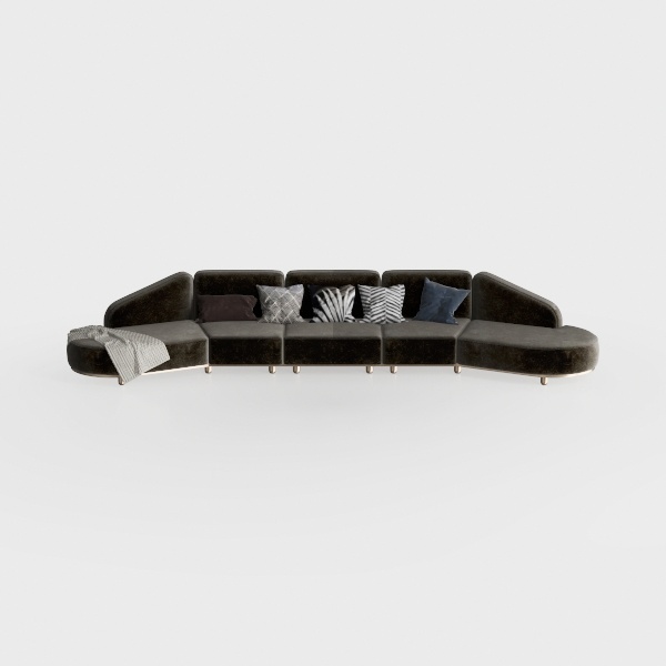 Introducing an exquisite sectional sofa that redefines modern elegance. Inspired by organic forms, this piece boasts a plush, velvety texture that invites relaxation while offering a contemporary touch to any living space. The rich, dark hue exudes sophistication, making it a versatile addition to various decor styles, from minimalist to luxury settings.