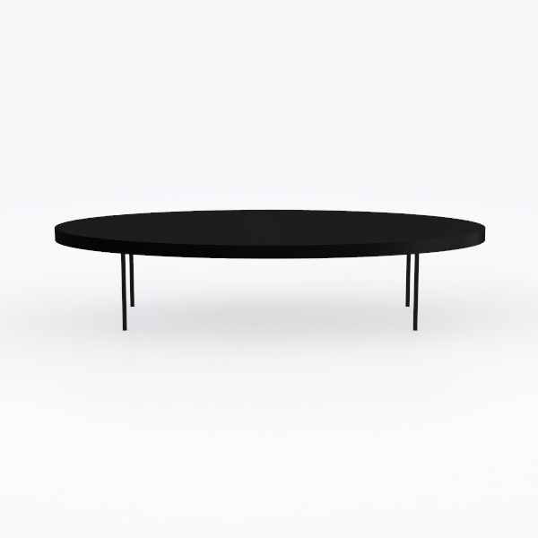 The tabletop, crafted from a rich, matte black material, feels cool and smooth to the touch—its subtle texture catching light gently without overwhelming glare, creating a sense of quiet luxury. The contrast between the warm depth of the black surface and the delicate, tapering black legs (slender yet sturdy) adds visual intrigue, making the piece feel both grounded and lightweight, never heavy on the eye.