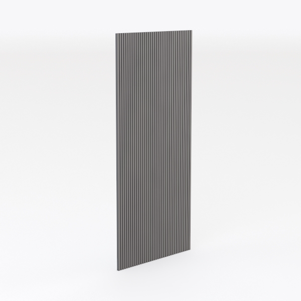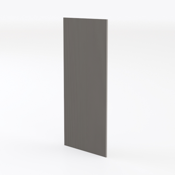 Crafted with a smooth yet subtly textured surface, the neutral gray hue exudes understated elegance. The vertical ridged pattern creates a dynamic interplay of light and shadow, casting soft, elongated shadows that enhance the room’s depth. The material feels cool to the touch, with a matte finish that avoids harsh reflections, making it both visually and tactilely pleasing.