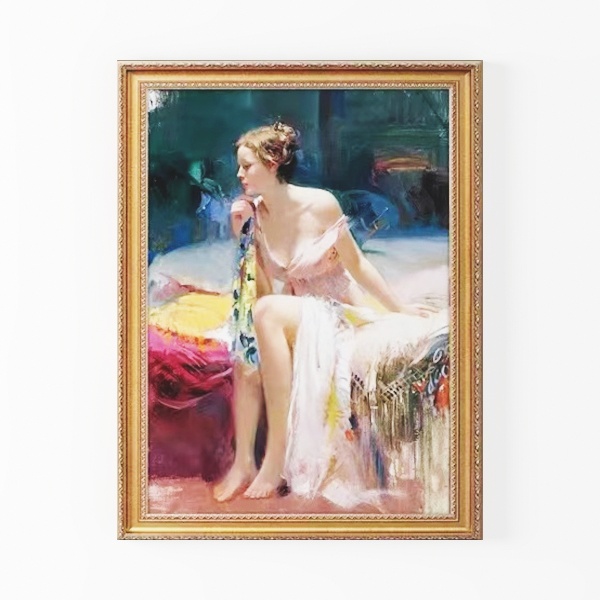Gold Framed Wall Art Room Decor Classical Oil Painting Canvas Print Vintage Wall Art for Living Room Bedroom Decor (Young Girl, 10L" x 8W")