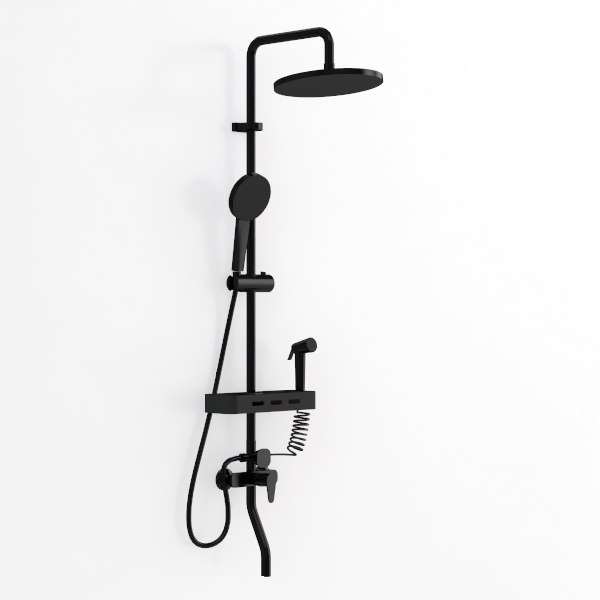 OSL Black 2-Way Shower Column, Adjustable Height from 83 to 120 cm, incl. Hose, Hand Shower and Round Sprayer