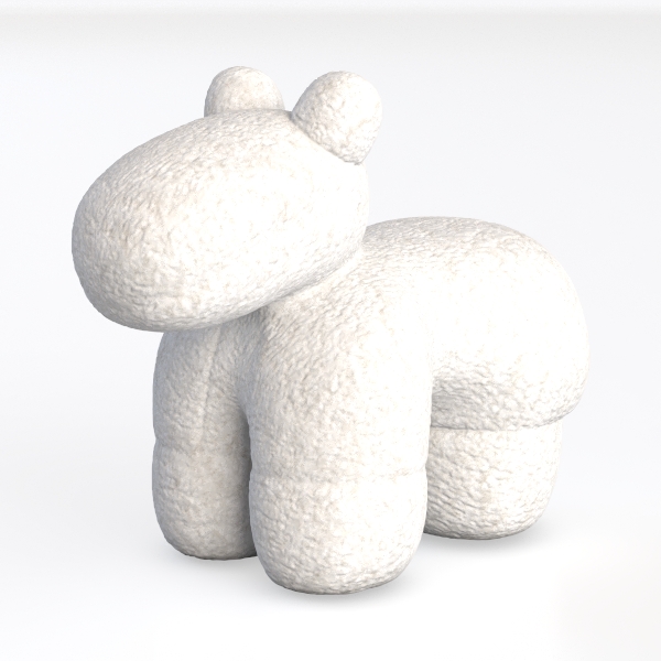 Visually, the piece radiates calm, anchored by a pure white hue that catches light softly, casting a warm, diffused glow across its surface. The texture is rich and inviting: a plush, fuzzy material that invites gentle touches, with a smooth, rounded shape that avoids sharp edges, making it feel both tactile and visually comforting.