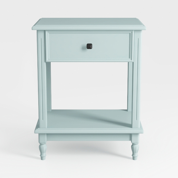 Perfect for a bedroom that leans into soft minimalism or a romantic, cottage-style retreat, it pairs beautifully with a white linen bed, a marble-topped side table, and a vintage-inspired desk lamp. The lower open shelf offers versatile storage—ideal for a potted succulent, a stack of novels, or a small alarm clock—while the drawer provides discreet space for bedtime essentials like a phone or reading glasses. Every element, from its color to its proportions, works to create a piece that feels both timeless and perfectly at home in modern life.