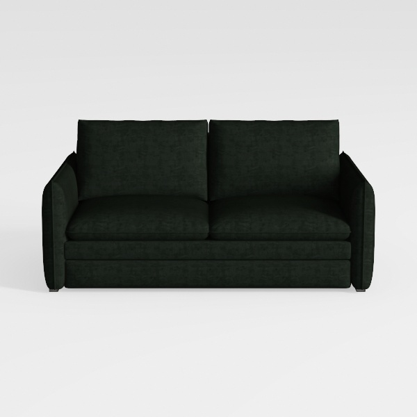 Introducing a striking dark green sofa that epitomizes modern elegance and comfort. The design draws inspiration from minimalistic aesthetics, seamlessly blending form and function. The rich fabric exudes a soft, luxurious feel, inviting you to sink into its plush cushions after a long day.