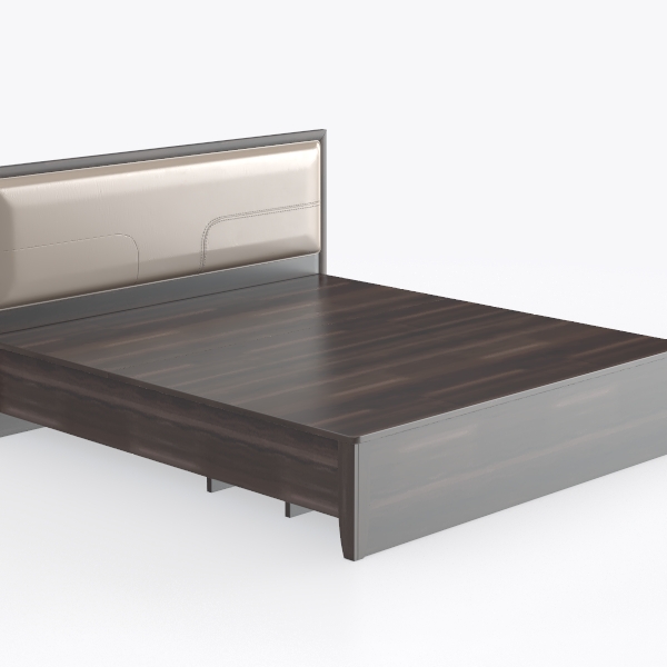 Designed to blend contemporary simplicity with timeless comfort, this piece draws inspiration from the balance of warmth and minimalism, seeking to transform a bedroom into a calm retreat. The main frame boasts a deep, rich wood tone with pronounced, smooth-grained patterns, casting a warm, grounding glow that complements diverse decor palettes. Its sleek, low-profile design avoids unnecessary ornamentation, focusing instead on clean lines that enhance space while maintaining a sense of solidity.