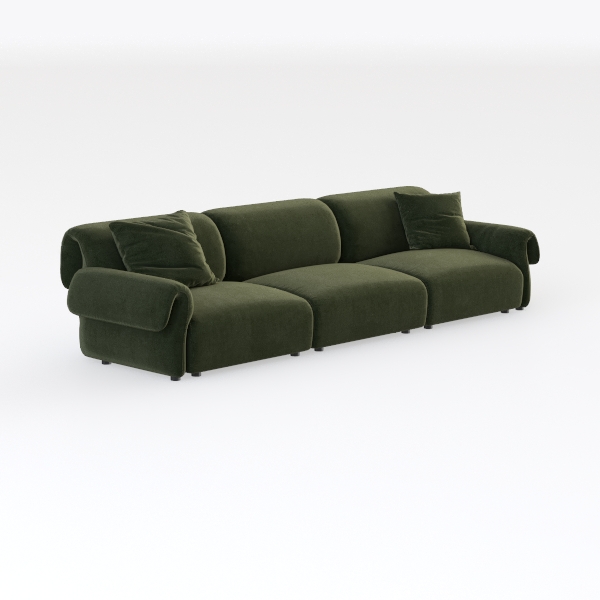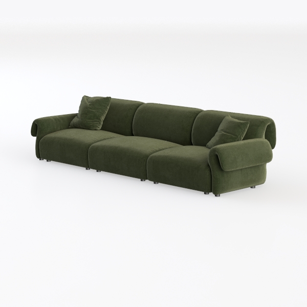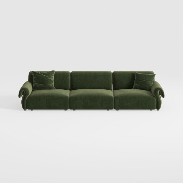 This elegant sofa exemplifies a harmonious blend of modern design and comfort. Inspired by the organic shapes found in nature, its lush green upholstery adds a refreshing touch to any living space. The soft texture invites you to sink in and relax, while the gentle curves offer a playful yet sophisticated visual appeal.