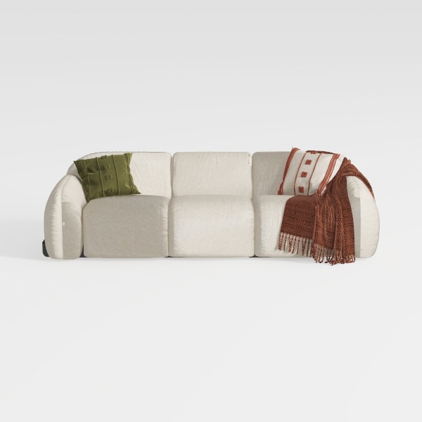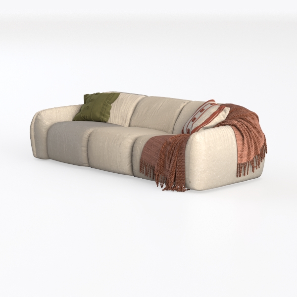 Introducing a stunning sofa that beautifully marries comfort and contemporary design. Inspired by the serene elegance of minimalist aesthetics, this piece features soft, rounded edges and a neutral fabric that invites relaxation. The gentle texture enhances its inviting nature, making it an ideal focal point for any living space.