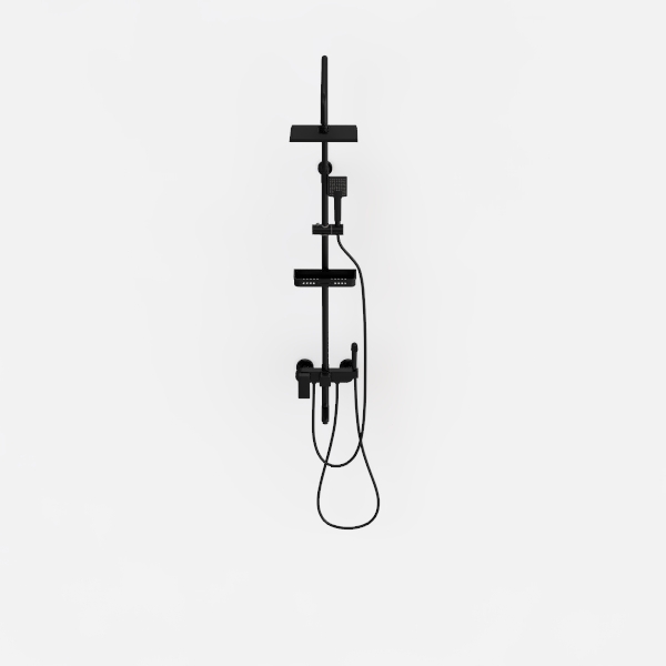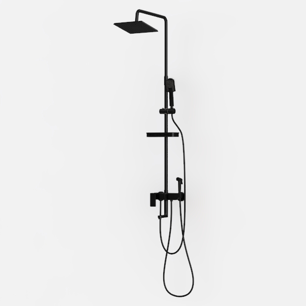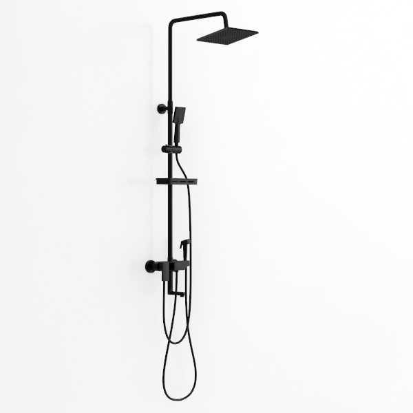 Wall Mounted Outdoor Shower System Matte Black 6" Square Rainfall Shower head with Hand Held Spray Double Cross Handles with Adjustable Slide Bar Two Function Exposed Shower Kit