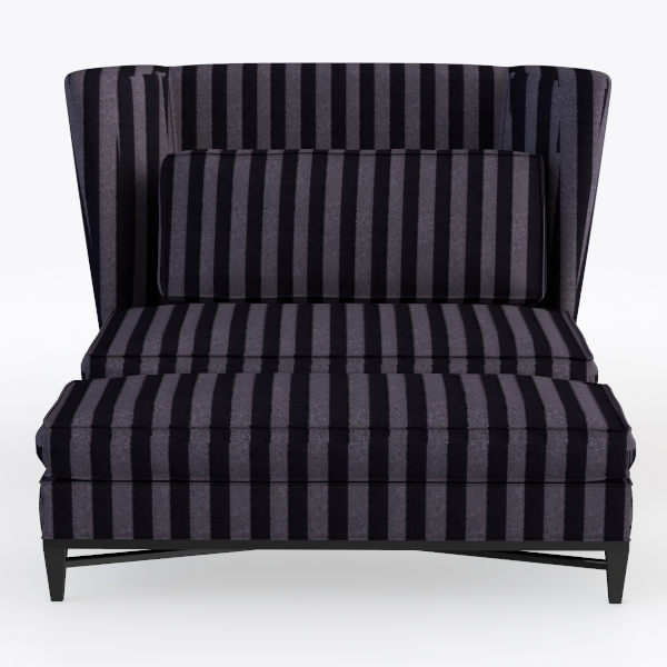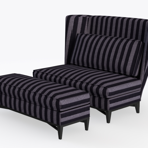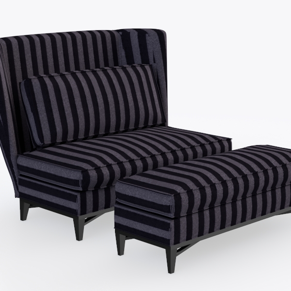Introducing a statement piece that effortlessly combines elegance and comfort, this armchair showcases a striking striped fabric in varying shades of deep gray and black. Inspired by modern art and contemporary design, its bold pattern creates a captivating visual appeal, making it a perfect focal point in any space. The rich texture evokes a sense of luxury, inviting you to run your fingers across its surface and indulge in its plush comfort.