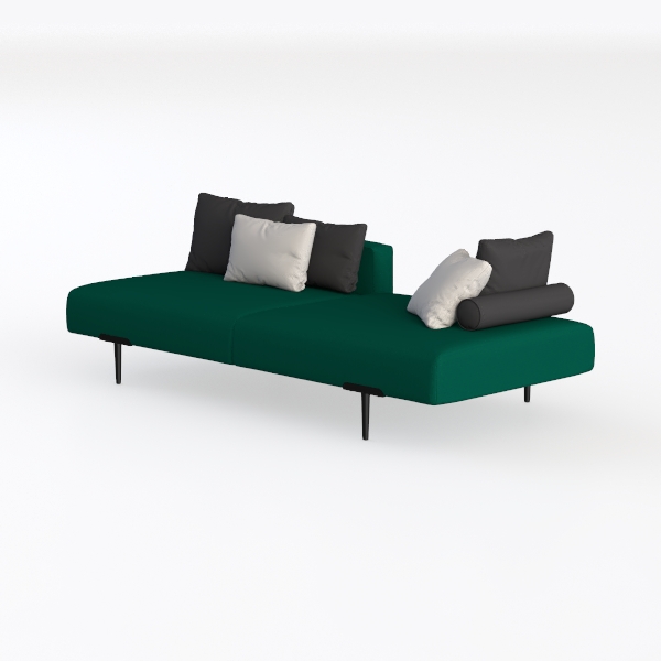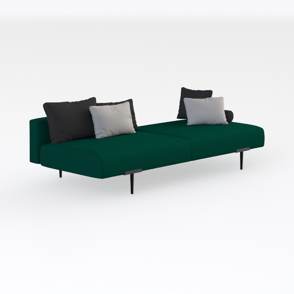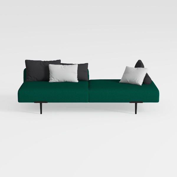 Inspired by the harmonious blend of modern design and comfort, this exquisite sofa redefines contemporary living. Wrapped in a rich, emerald green fabric, it exudes luxury while inviting touches of warmth. The soft texture provides a cozy feel, encouraging relaxation as you sink into its embrace.