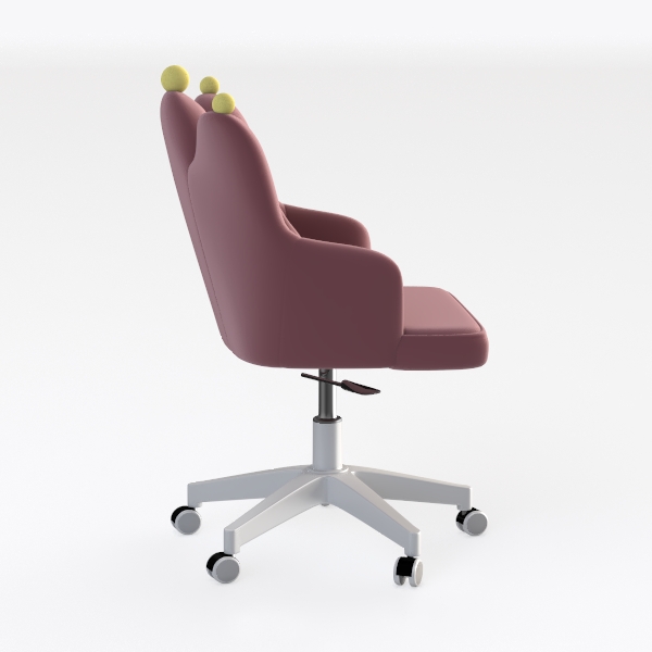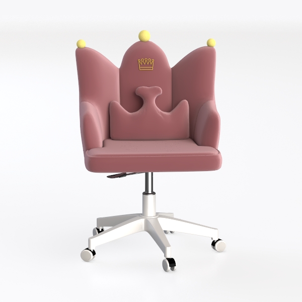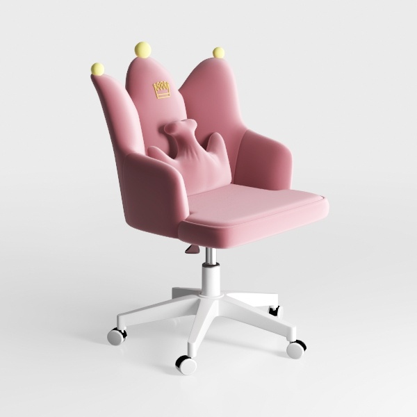 This charming chair draws inspiration from fairy tale magic and royal aesthetics, with a whimsical crown motif on its curved backrest, complemented by soft yellow spherical accents that add playful character. Crafted with a velvety blush pink upholstery, it offers a delightfully soft and warm touch, inviting kids to nestle in for hours of comfort. The sleek white five-point base, paired with smooth-rolling casters, adds a modern contrast, balancing the whimsy with practicality.