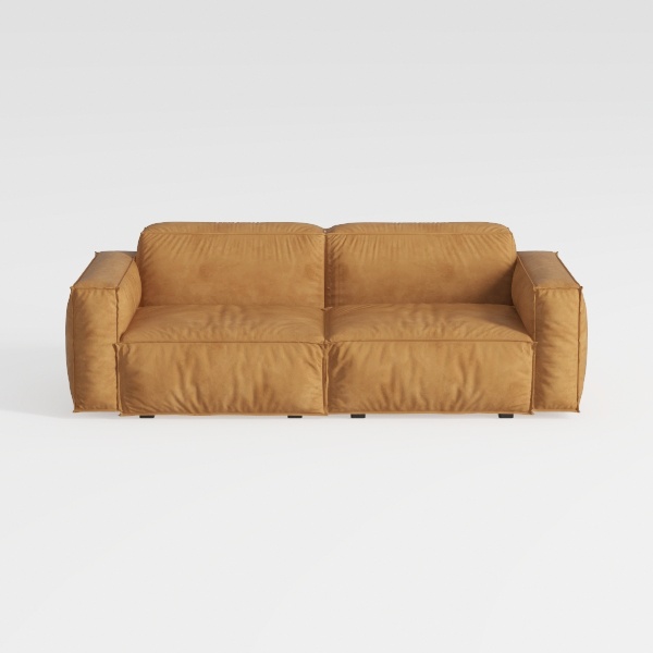 Drawing inspiration from contemporary minimalist design, this sofa exudes a warm and inviting aesthetic that perfectly balances comfort and style. The soft, leather-like texture invites touch, while its rich tan hue adds a cozy, earthy element to any living space. The plush cushions offer an exceptional seating experience, providing ample support for prolonged lounging.