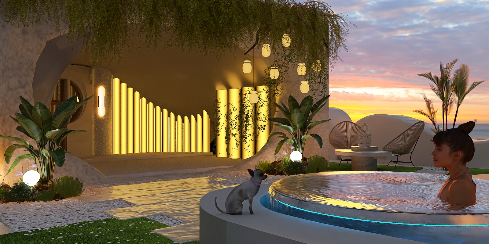 Perfect for spaces aiming for a relaxed yet intentional aesthetic, it pairs effortlessly with diverse styles. In a modern living room, it complements marble or ceramic coffee tables and neutral sofas, adding sculptural interest. For a bohemian or tropical-inspired setting, mix it with jute rugs, woven baskets, and potted ferns to amplify its laid-back allure. Even on a sunlit balcony or sunroom, its airy design ensures breathability, making it ideal for lazy afternoons.