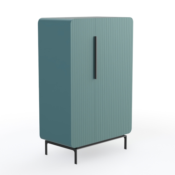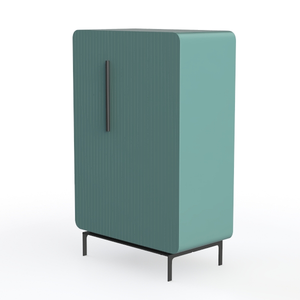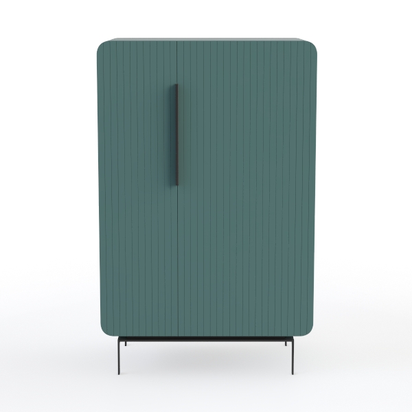 This elegant storage cabinet draws inspiration from the interplay of natural textures and minimalist Scandinavian design, blending organic warmth with clean lines. Crafted with a smooth, matte finish that feels cool and slightly textured to the touch, its muted sage green surface exudes a calm, earthy vibe, while vertical slats running from top to bottom create a rhythmic, elongating pattern that visually opens up the space. A sleek, unadorned black handle adds a subtle, modern accent, contrasting softly with the cabinet’s body, while slender black metal legs elevate it slightly, balancing stability with a light, airy feel.