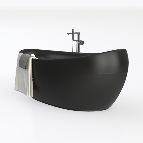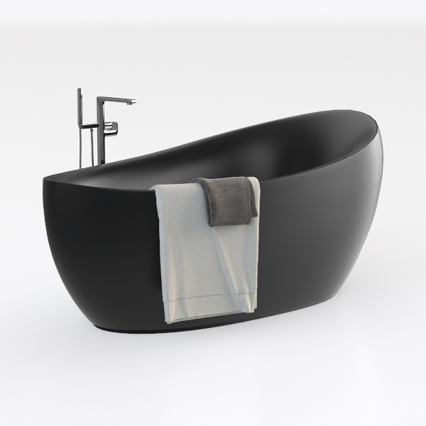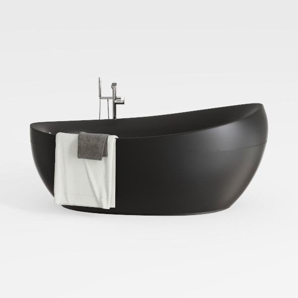 70" Oval Freestanding Bathtub Modern Black Soaking Tub Stone Resin
