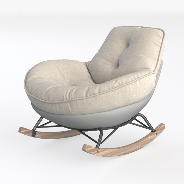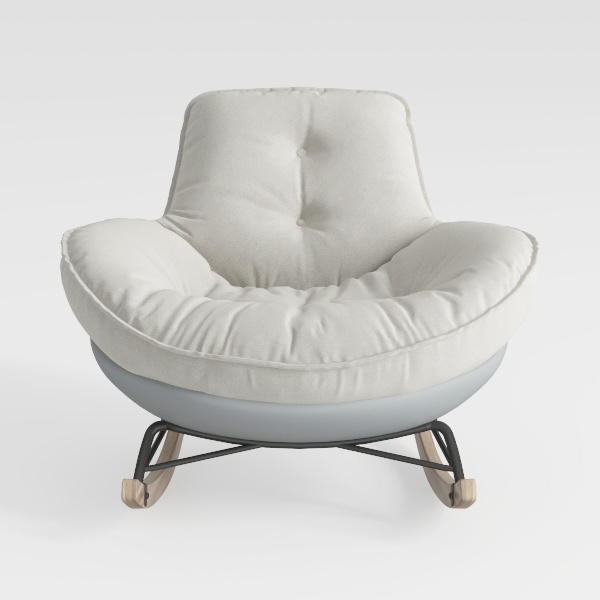 Inspired by soft curves and minimalist charm, this armchair features plush cream upholstery, a smooth gray base, and sleek black metal legs, blending coziness with modern style. Ideal for a contemporary living room, it pairs beautifully with marble coffee tables and metallic accents, while its wide, deep seat and gentle rocking motion offer exceptional comfort for unwinding.